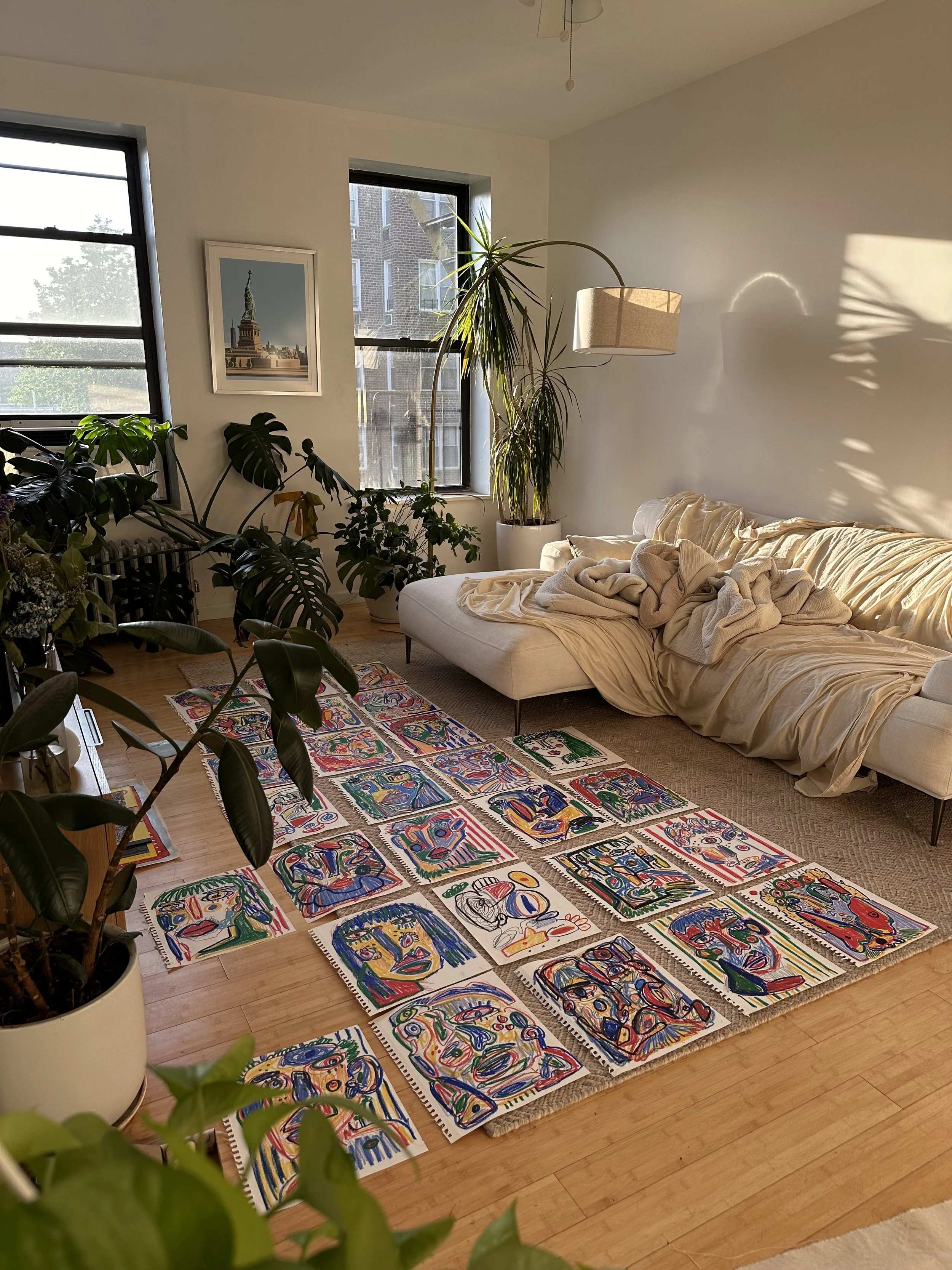 Alyssa Stevens (b. 1997) is a New York-based artist working primarily with oil pastel on canvas. Her practice is rooted in the exploration of the space between worlds—formed by memory, longing, and connection. Often drawn to familiar places from childhood that feel altered and suspended in time, Stevens returns to these realms through her work, viewing them as portals to process loss, the unseen, and the impermanence of it all. Her process is intuitive, driven by feeling and form, and guided by a desire to understand what ties her to these in-between spaces.